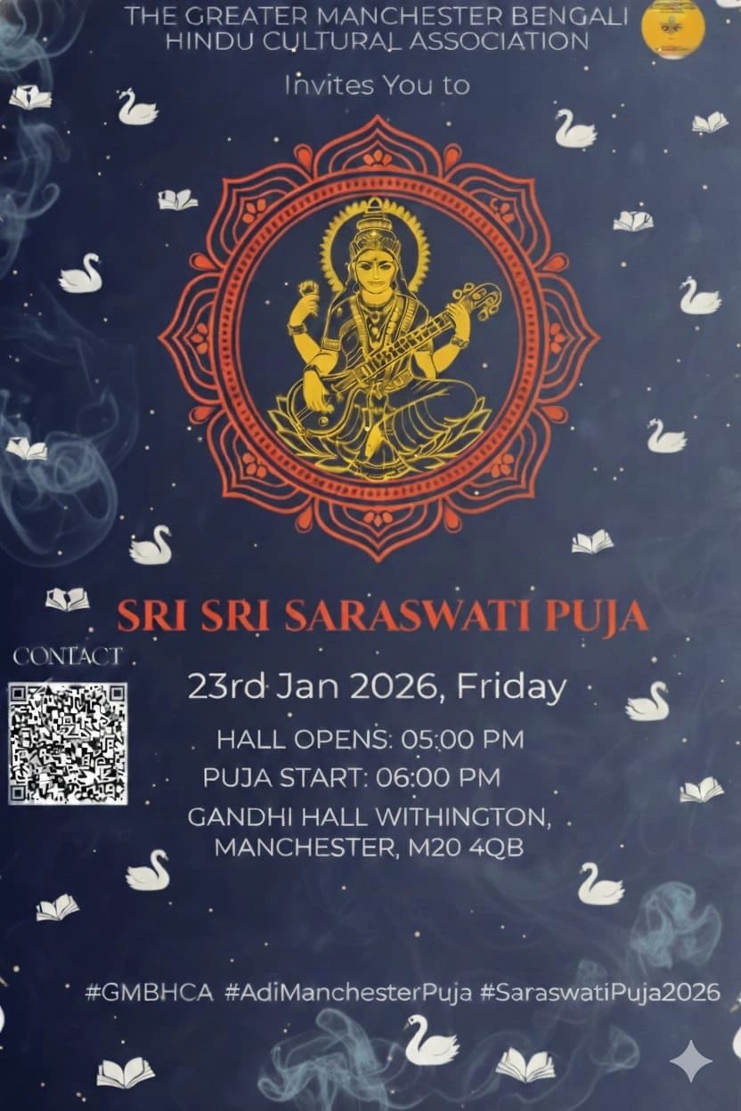 The Greater Manchester Bengali Hindu Cultural Association celebrates Hindu social and religious festivals that include Durga Puja, Lakshmi Puja, Kali Puja or Diwali, Saraswati Puja and organises cultural activities such as Bijoya Sammilani, Bengali New Year (Naboborsho) and other functions which include Classical, Folk and Bollywood danc